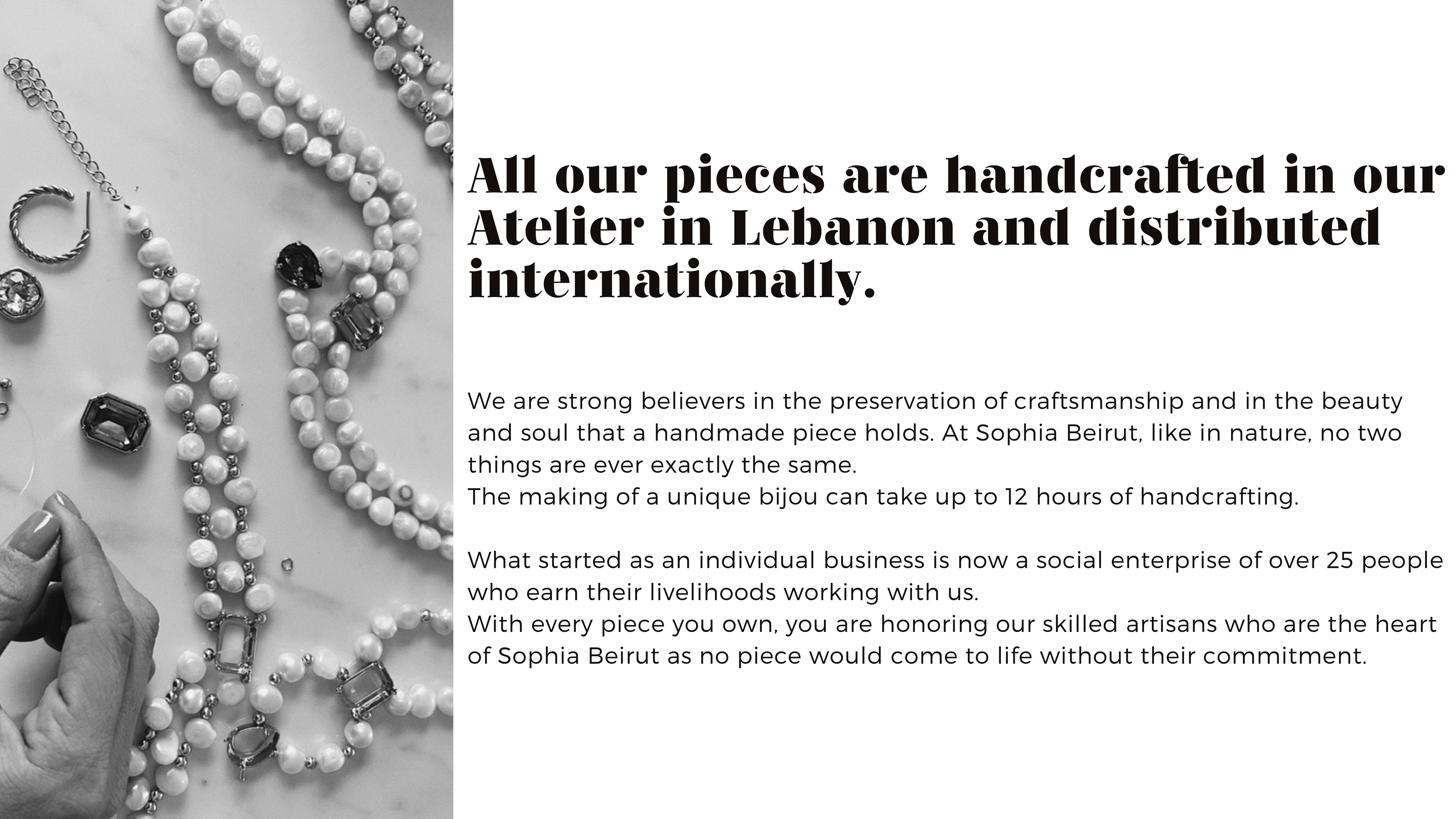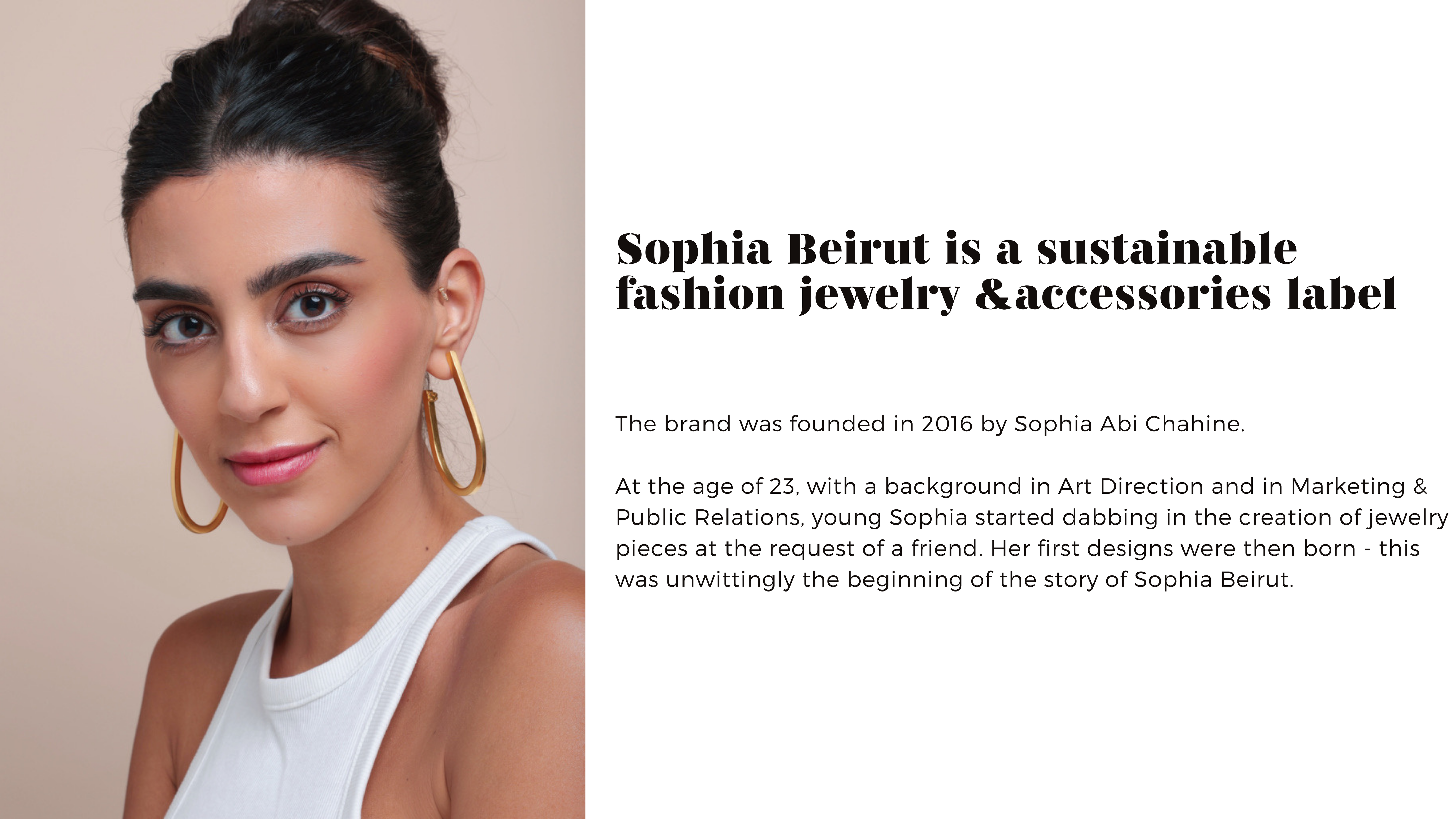 And so began the story of Sophia Beirut in 2016 , an accessible luxury jewelry label, conceived out of Sophia’s ambition to create a tool for the women around her to feel empowered and in turn empower others. Being born in France, Sophia aimed to create a brand that merges her experience growing up in one of the most renowned cultural & artistic hubs, all while celebrating her heritage as an Arab woman & supporting the local artisanship of her homeland; Beirut.